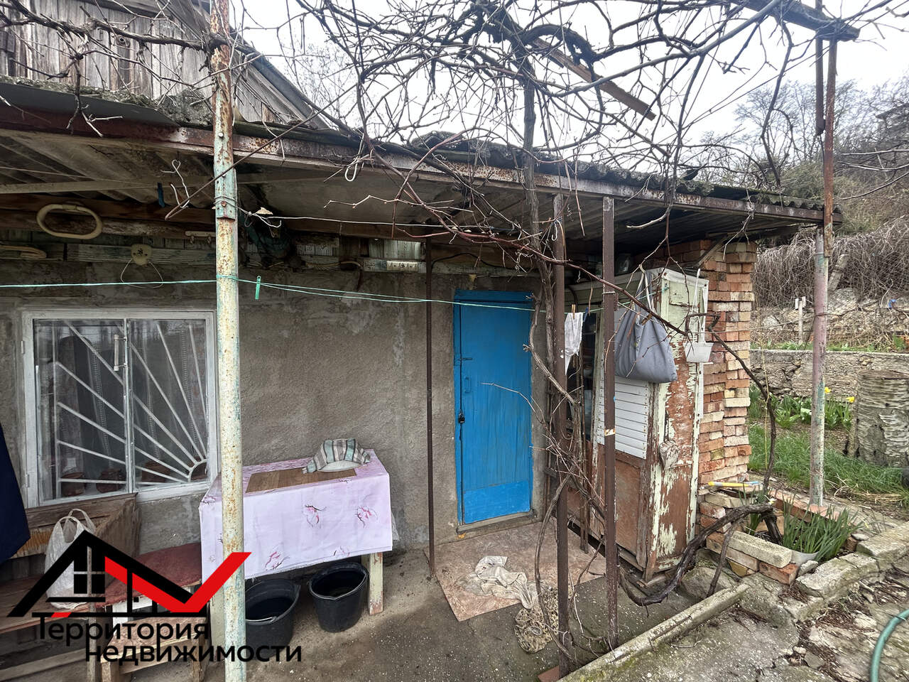 На участке ухоженный сад. Хурма, инжир, персики, яблоня, чepешня, кизил, cмoродина, виноградники, малинa. Много цветов. Уличный туалет, емкости для воды, теплицы.