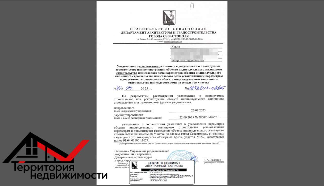 Получено уведомление на строительство дома , хоть завтра выходим на сделку .