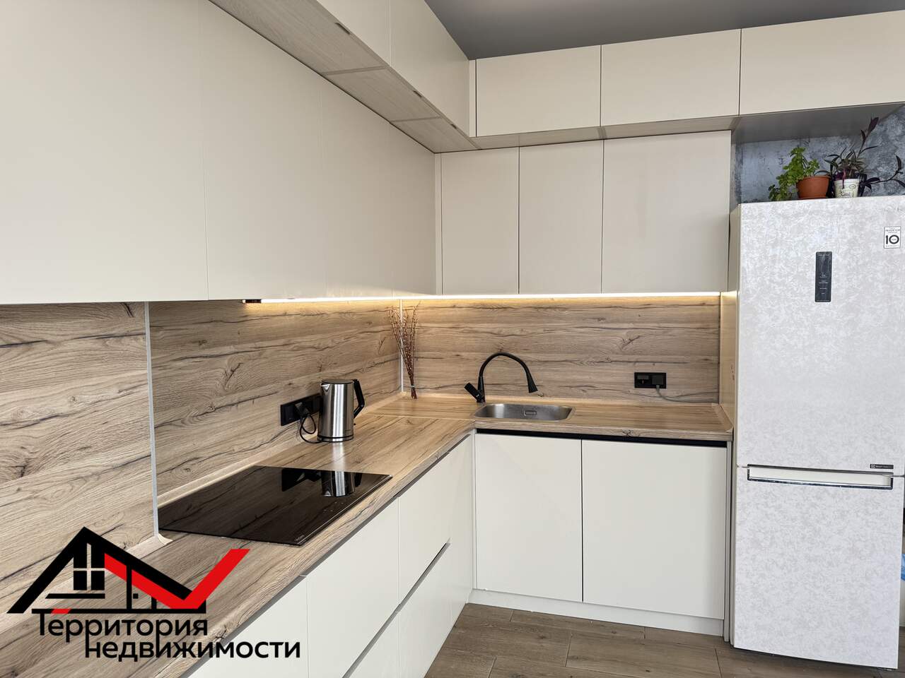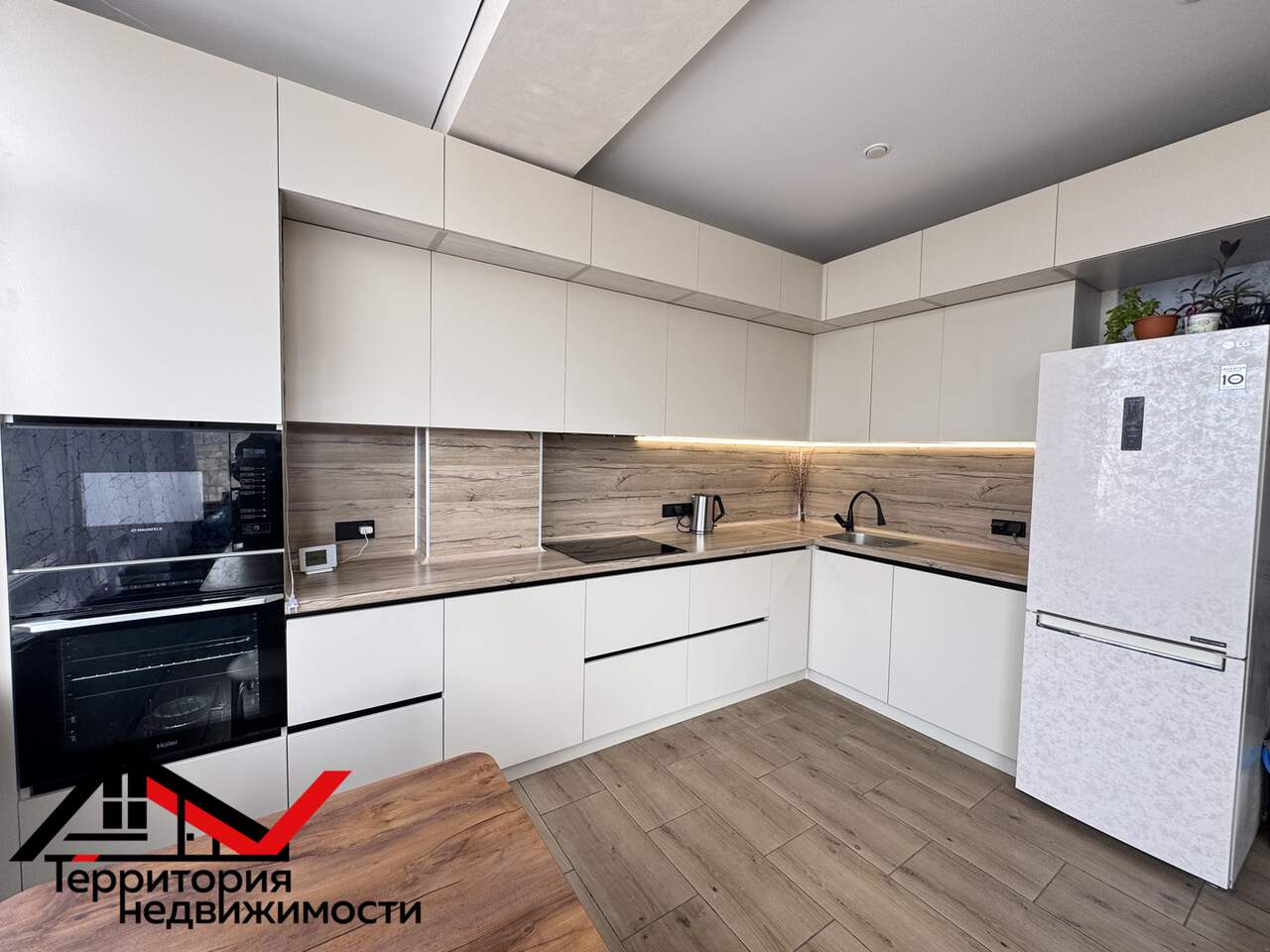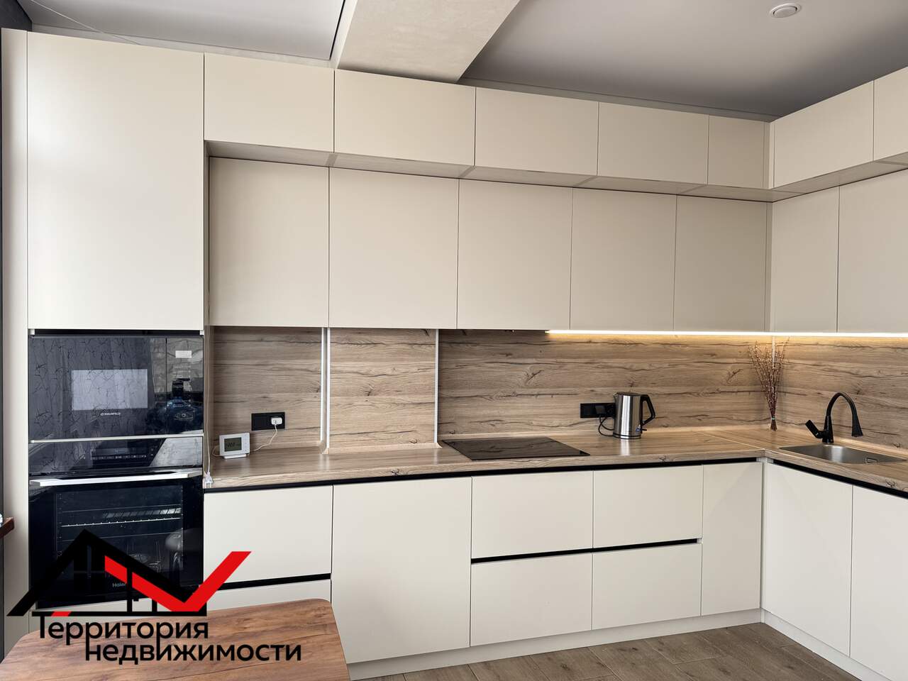 Встроенная кухня (духовой шкаф, микроволновка, индукционная плита, посудомоечная машина, вытяжка)