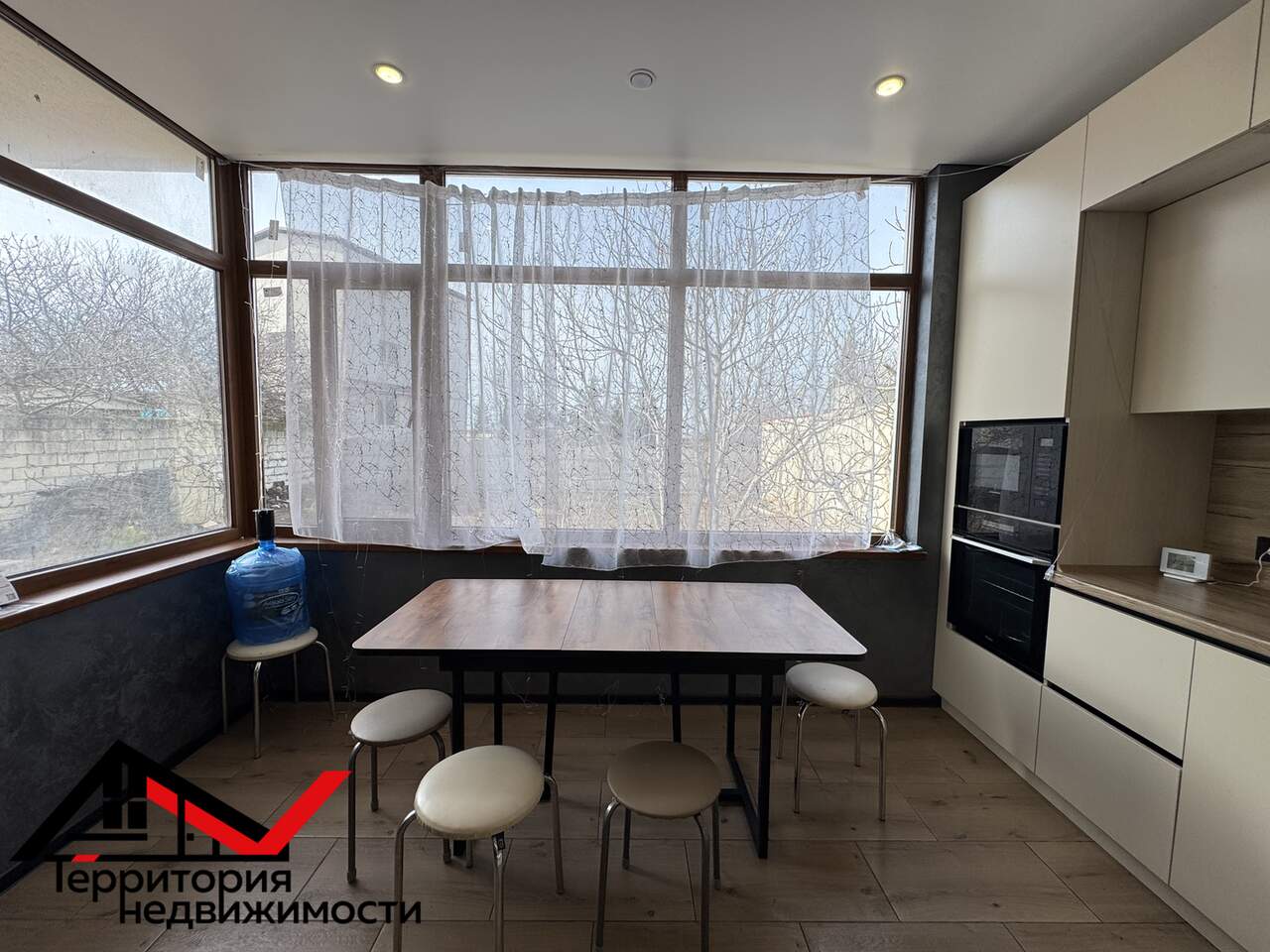 Просторная кухня-гостиная с выходом на задний двор
