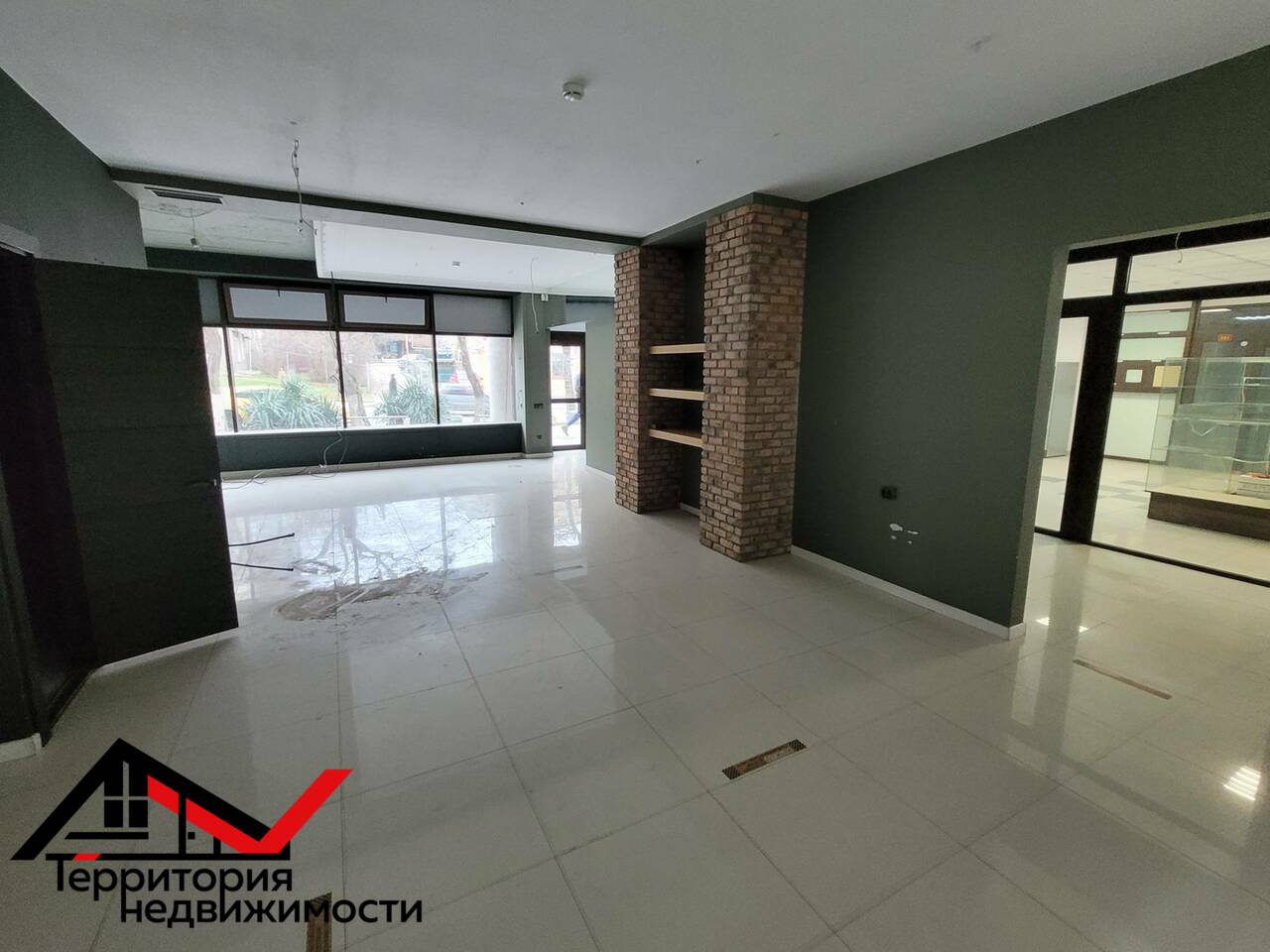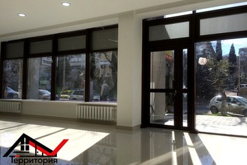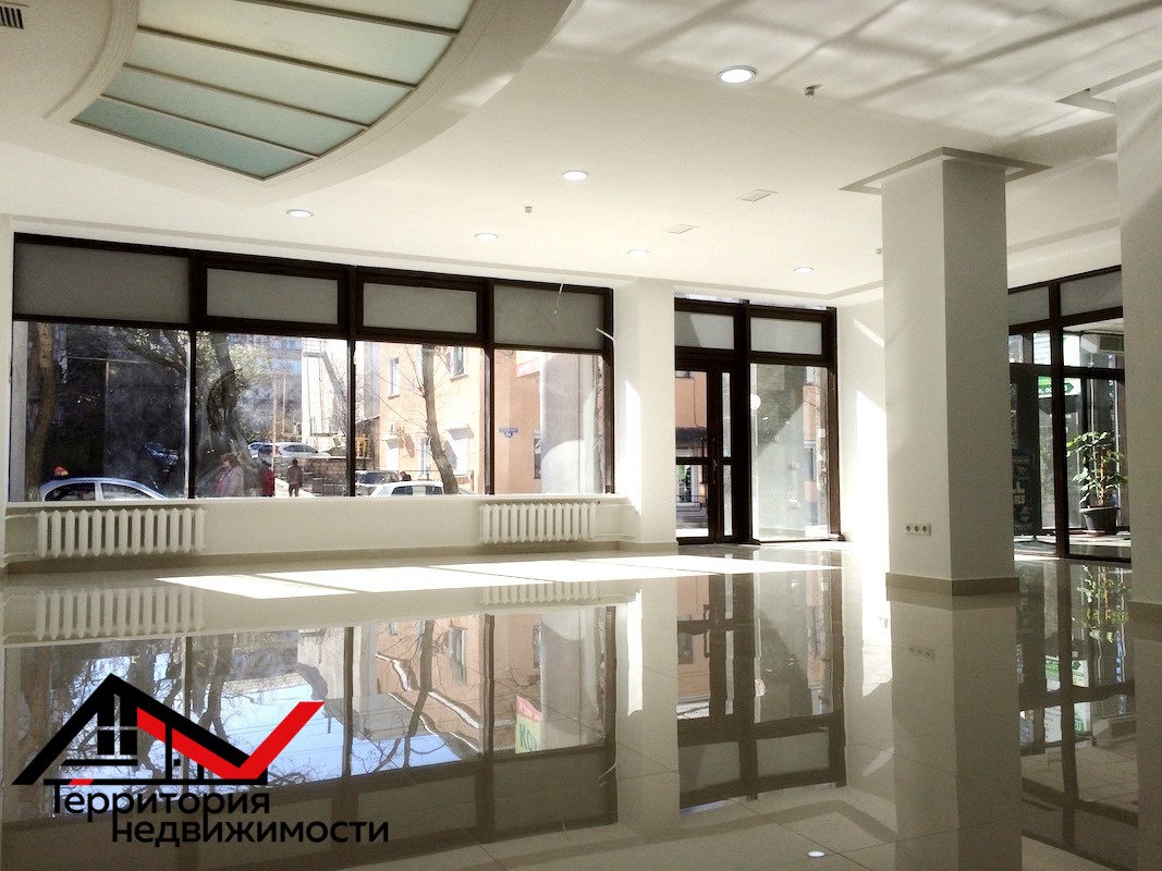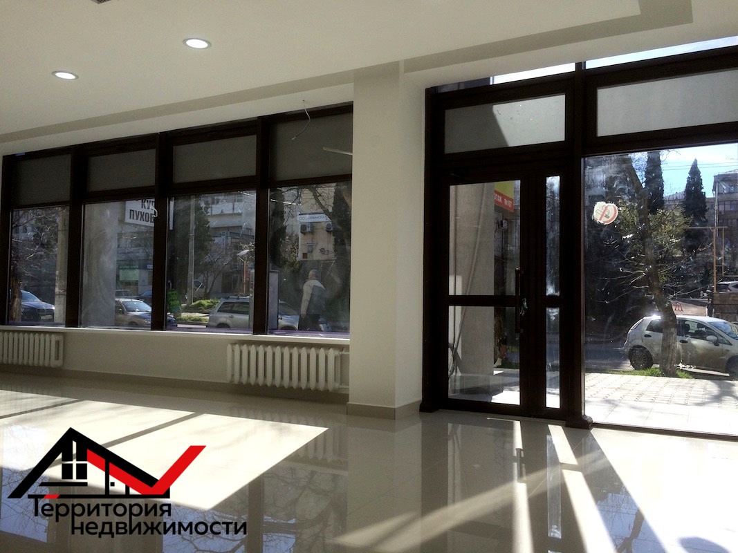 - Презентабельное помещение с панорамными окнами в самом центре города. Есть возможность сделать большую видимую рекламу на фасаде.