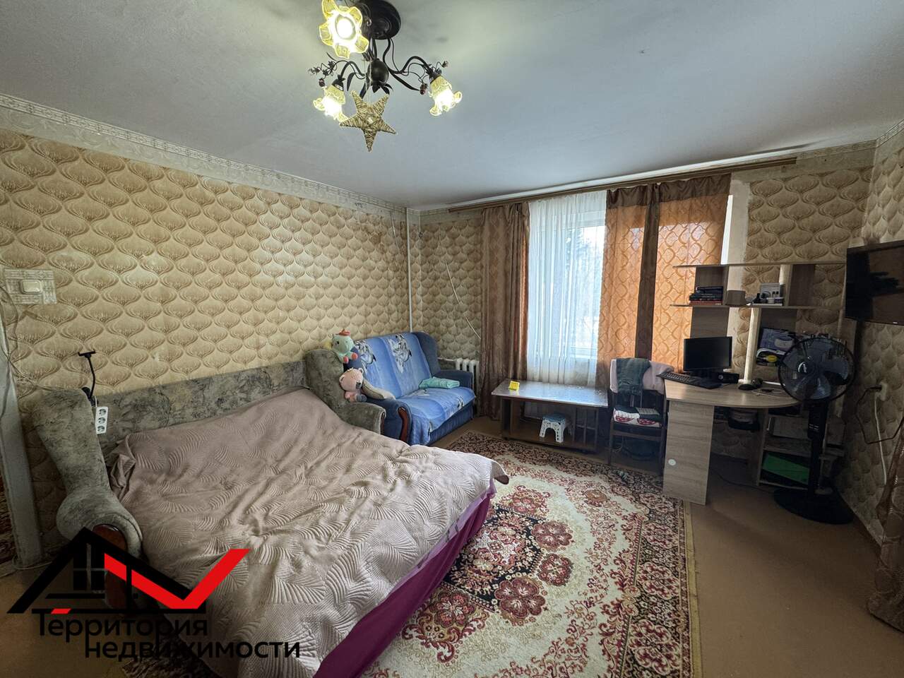 Готова к заселению однокомнатная квартира без косметического ремонта, но полностью оборудованная для комфортного проживания. Вся мебель и техника, представленные на фотографиях, остаются новому владельцу.