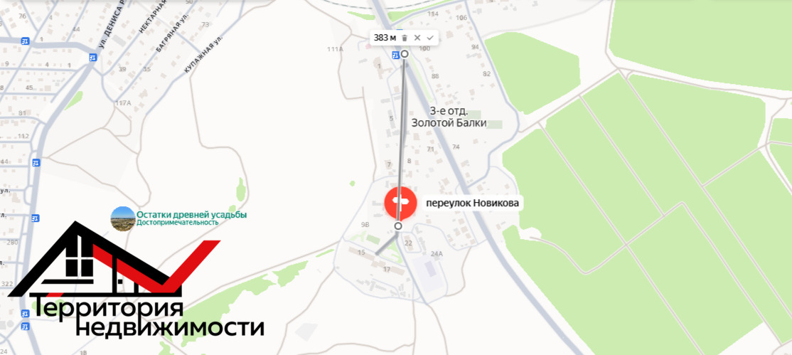 Отличный ровный участок прямоугольной формы в тихом и красивом месте на ул. Новикова, 18.