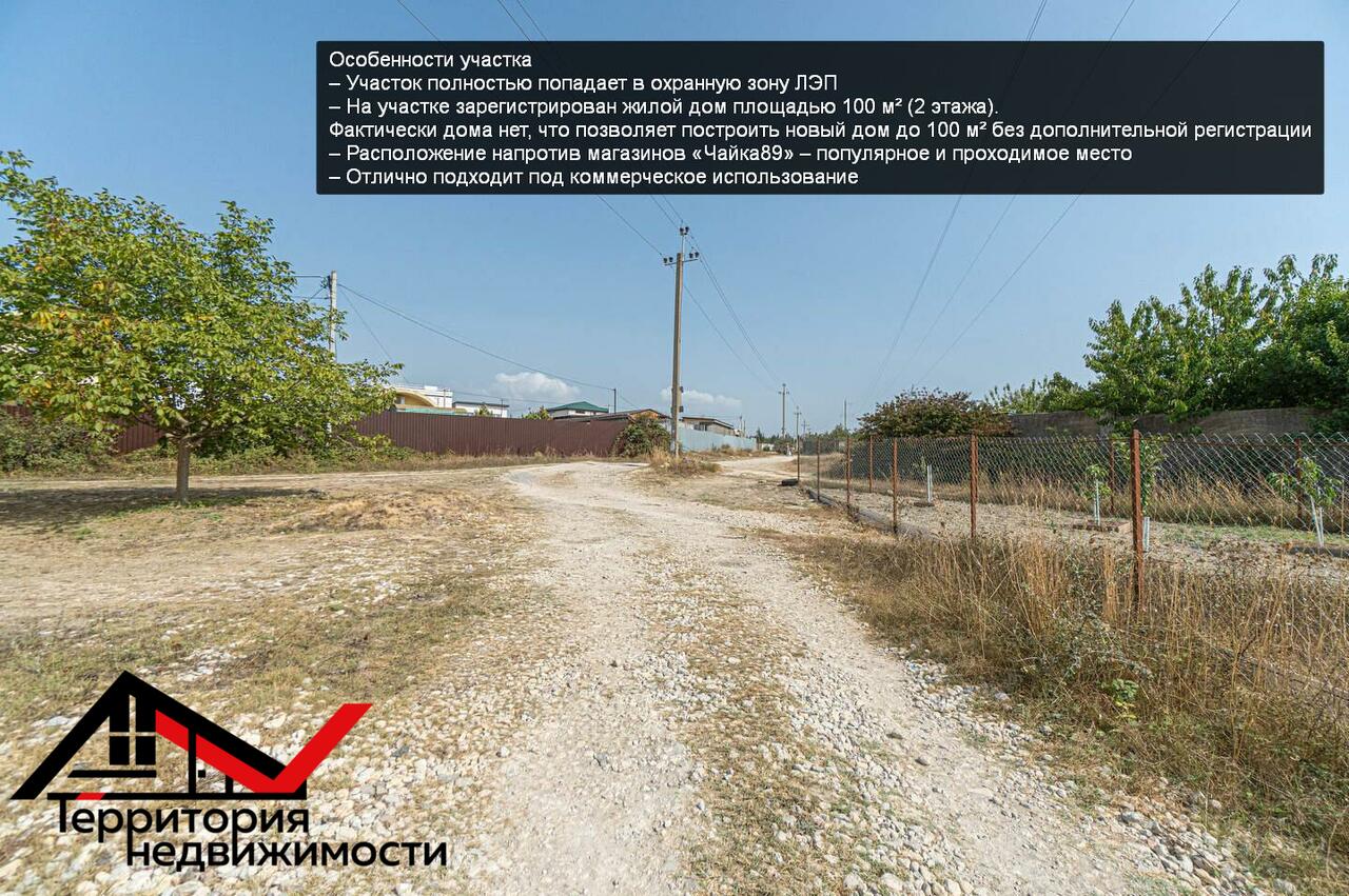 – На участке зарегистрирован жилой дом площадью 100 м² (2 этажа). Фактически дома нет, что позволяет построить новый дом до 100 м² без дополнительной регистрации