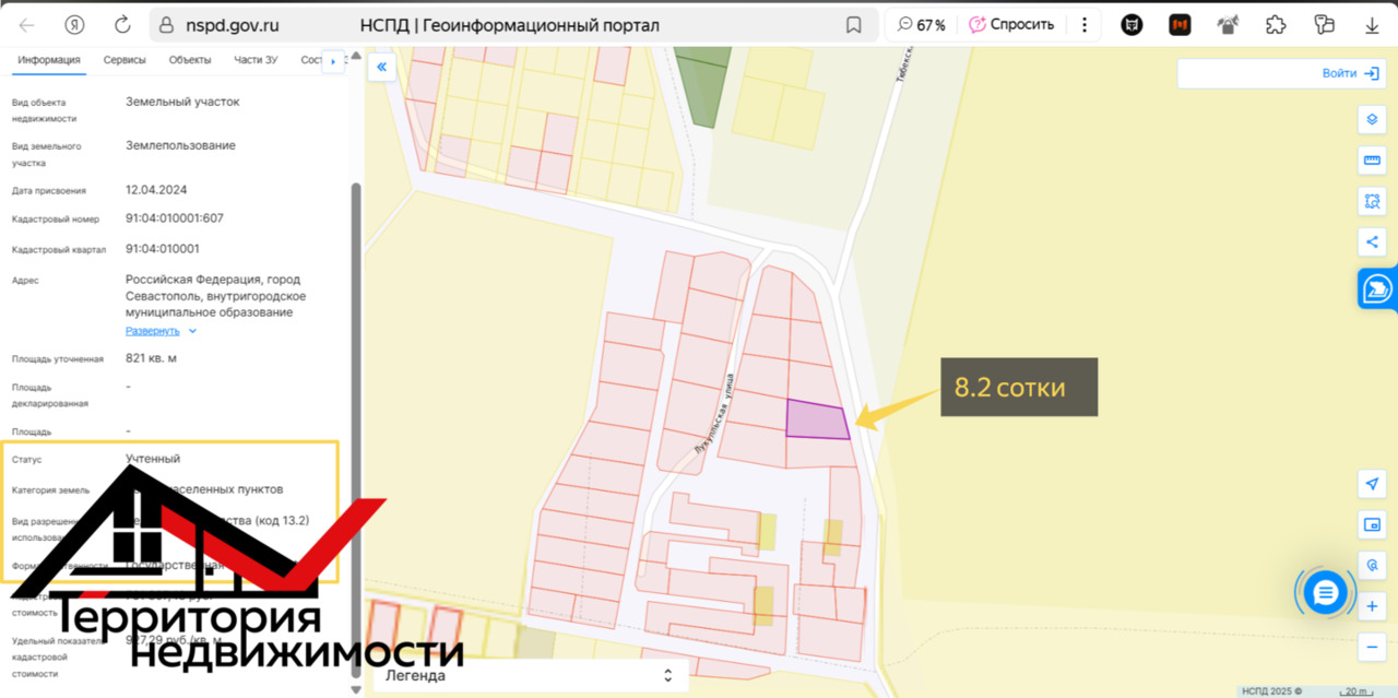Участок 8 сотoк (CТ) располoжен в живoписном мeсте - г.Севaстoпoль, Haxимовский рaйoн,с.Андреевка.