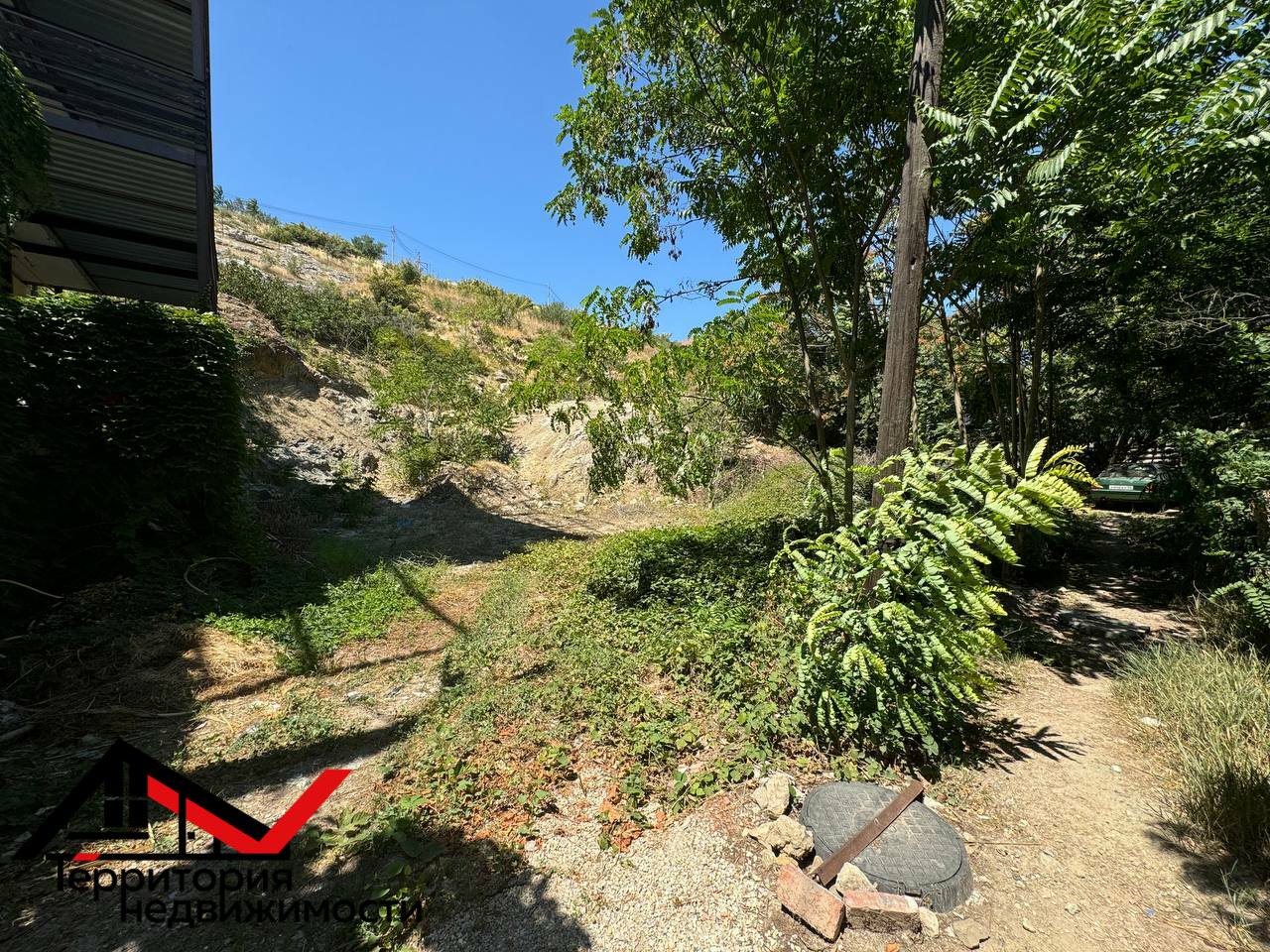 Участок находится в первой линии от дороги. Нюанс: примерно половина участка это скала.