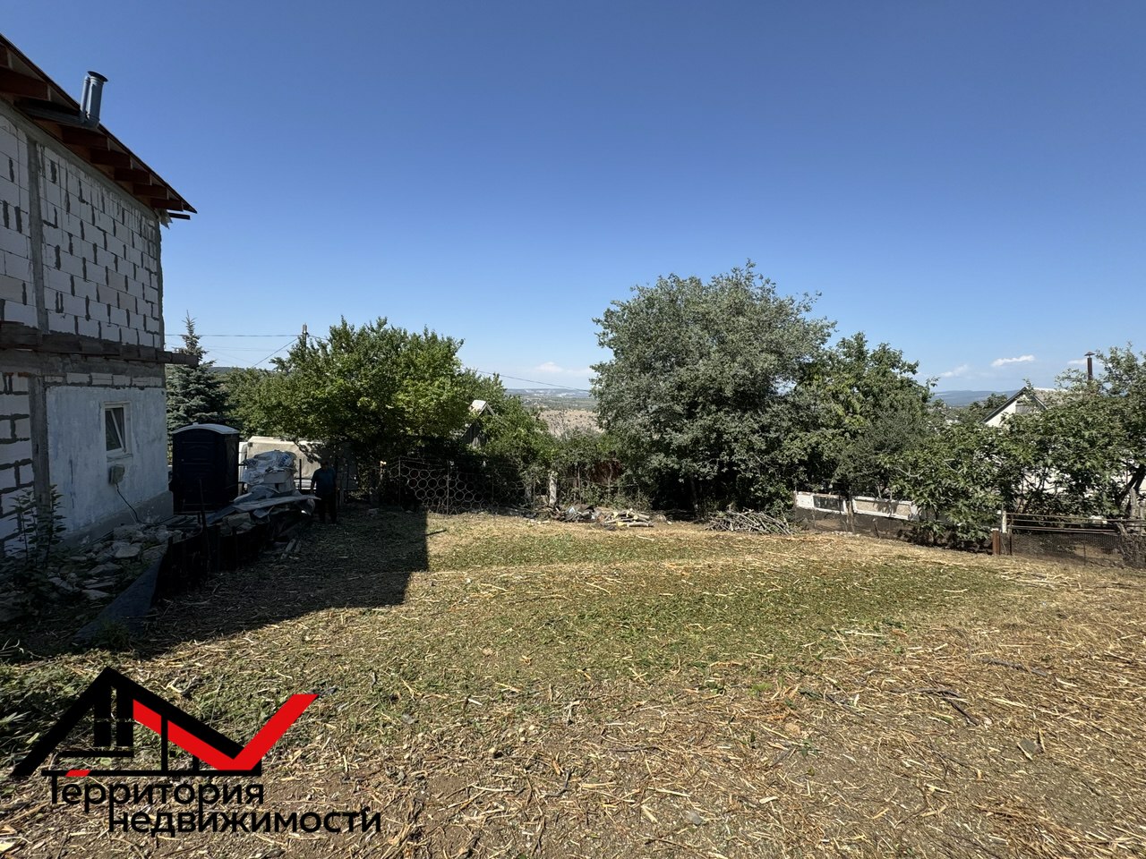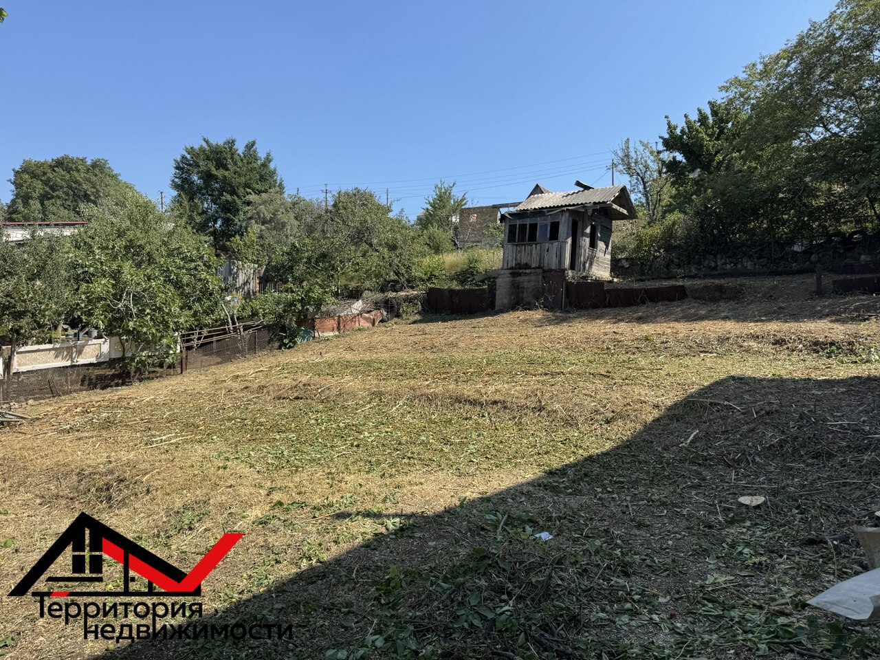 Участок вычищен, имеет небольшой склон, полное пятно застройки.