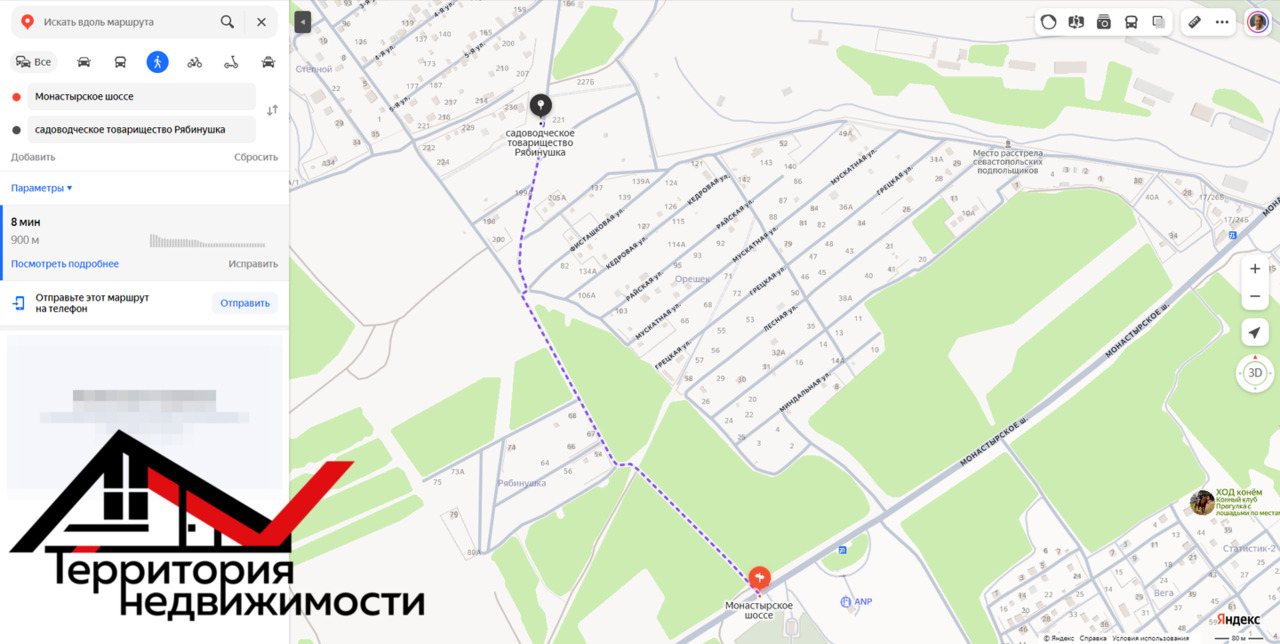 Участок находится в развитом районе города, вдали от городской суеты, но, при этом, с необходимой для жизни инфраструктурой. До основной дороги - 900 м, где расположена остановка общественного транспорта.