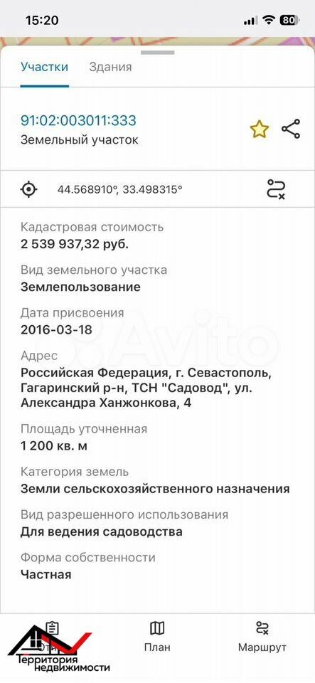 Продам земельный участок в Гагаринском районе Севастополя, ст